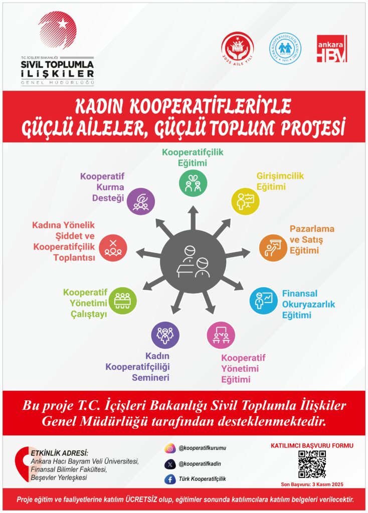 “Kadın Kooperatifleriyle Güçlü Aileler, Güçlü Toplum” Projesi, kadınların ekonomik ve sosyal hayatta daha aktif rol almasını desteklemeyi amaçlayan kapsamlı bir eğitim ve farkındalık programıdır.